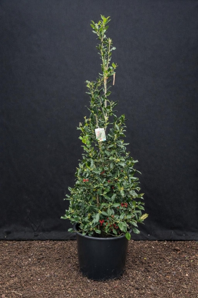 Zimozielony krzew, formowany w stożek. Ma błyszczące, ciemnozielone, kolczaste liście i jest bardzo dekoracyjny przez cały rok. Jesienią i zimą zdobią ją liczne, intensywnie czerwone owoce. Dobrze znosi cięcie, nadaje się na żywopłoty i nasadzenia soliterowe.