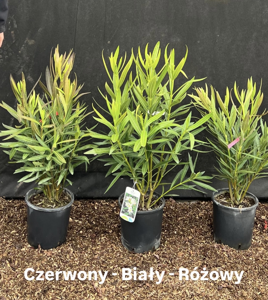 Oleander pospolity 'Nerium oleander' to wiecznie zielony krzew o efektownych, często intensywnie kolorowych kwiatach, kwitnący latem i wczesną jesienią. Lubi słoneczne stanowiska jest odporny na suszę.