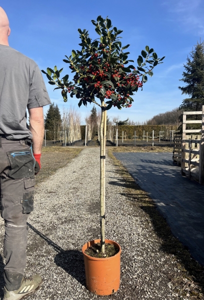 Eleganckie, kuliste drzewko o całorocznej dekoracyjności. Jego sztywne, błyszczące liście są ciemnozielone. Prawdziwą ozdobą krzewu są jednak jaskrawoczerwone, kuliste owoce, które jesienią i zimą obsypują koronę, tworząc magiczny kontrast z zielenią liści. Jest doskonałym akcentem w ogrodzie, zwłaszcza w okresie świątecznym.