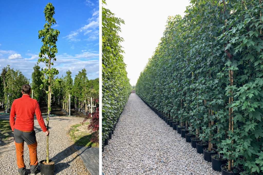 Efektowne drzewo ozdobne o regularnej koronie i charakterystycznych, klapowanych liściach, które jesienią przebarwiają się na intensywne odcienie czerwieni, pomarańczu i purpury. Jest ceniony za walory dekoracyjne, szybki wzrost i oryginalne owoce.