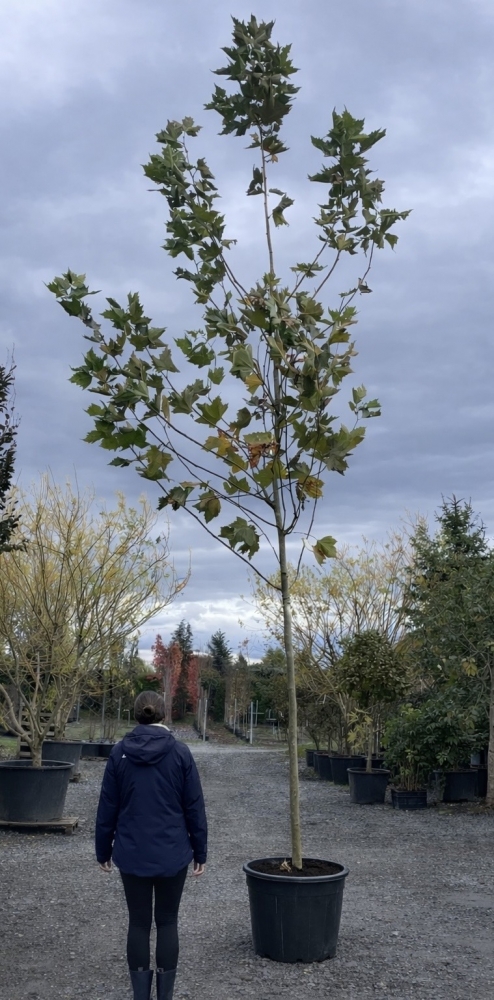 Duże szybkorosnące drzewo liściaste o szerokiej koronie i charakterystycznej, łuszczącej się korze. Liście przypominają liście klonu, a jesienią przebarwiają się na żółto-brązowo. Jest odporny na warunki miejskie i często sadzony w alejach oraz parkach.