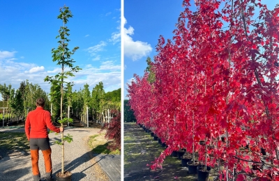 WięcejEfektowne drzewo ozdobne o kilku pniach i szerokiej, regularnej koronie. Jego charakterystyczne, klapowane liście jesienią przebarwiają się na intensywne odcienie czerwieni, pomara...